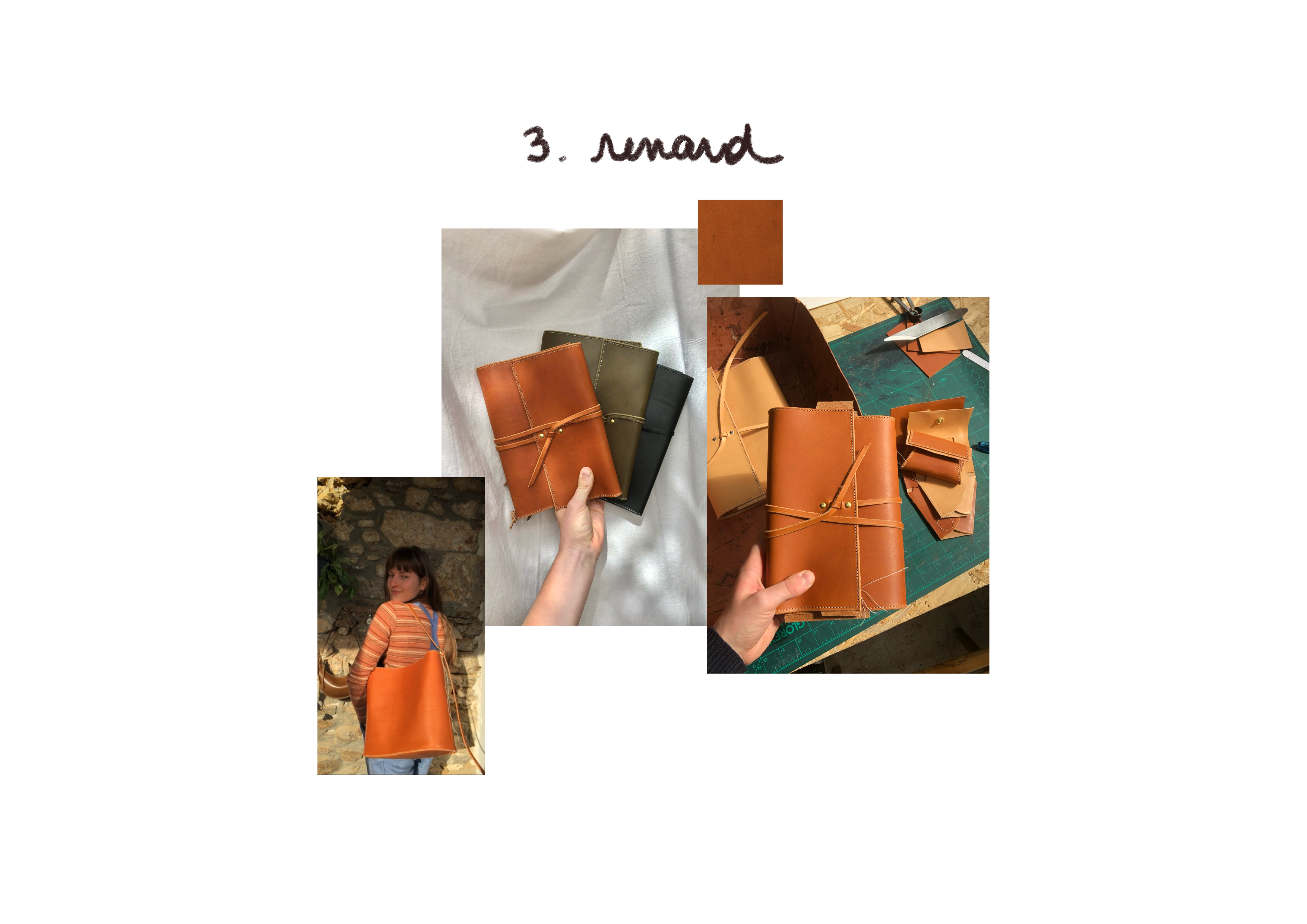 Le cuir est teinté dans la masse d'un coloris qui rappelle le pelage d'un renard. Exposée au soleil, la couleur est vibrante et se pare de magnifique reflets. Il comporte une finition transparente qui sublime chaque détails de la matière.
