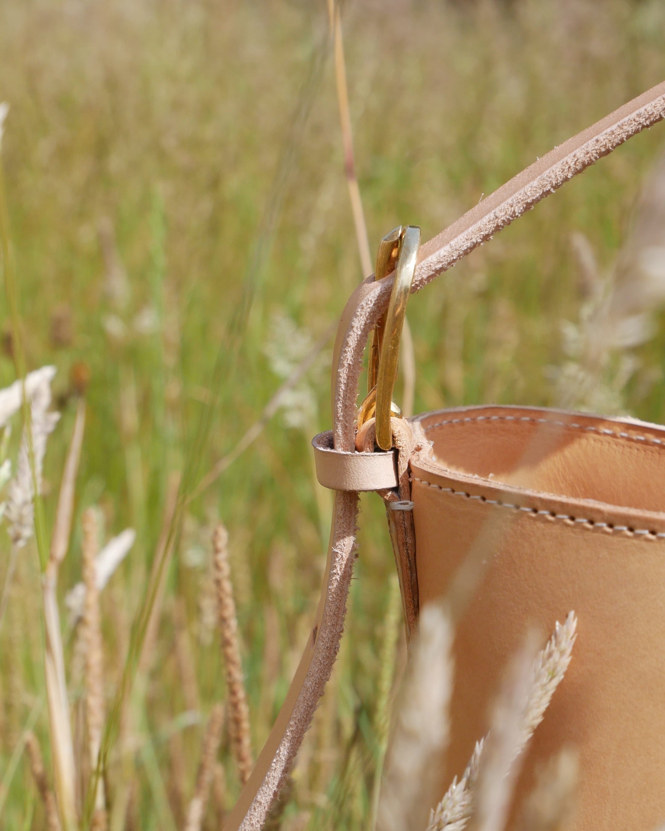 Le Malo Mini est réalisé en cuir tanné végétal français et fabriqué à la main avec amour dans mon atelier breton. J'utilise pour les assembler de la colle biosourcée qui ne contient pas de solvants chimiques. La bouclerie est en laiton et fondue à Paris.